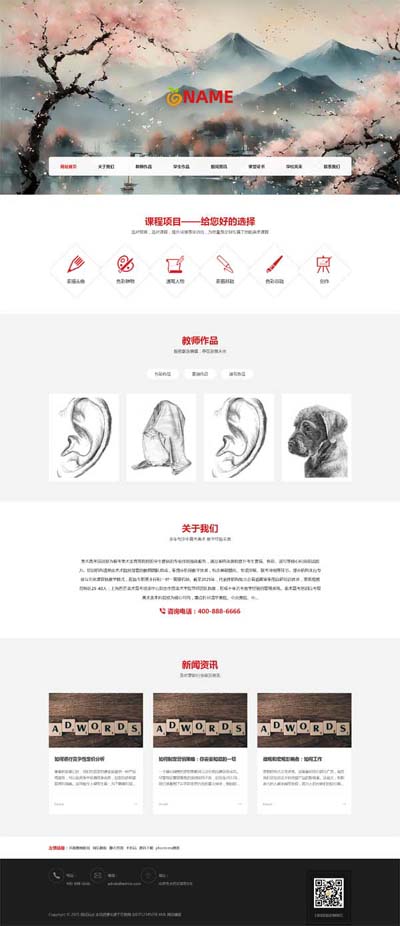 (自适应)美术培训机构网站模板 画室画廊网站源码下载