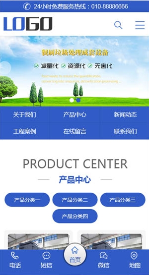 (带手机)蓝色机械设备网站模板 水泵泵业企业网站源码下载